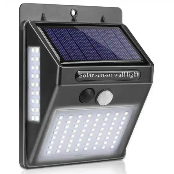 Um refletor com 100 Leds, detector de Movimentos, Fotocélula e Painel Solar.