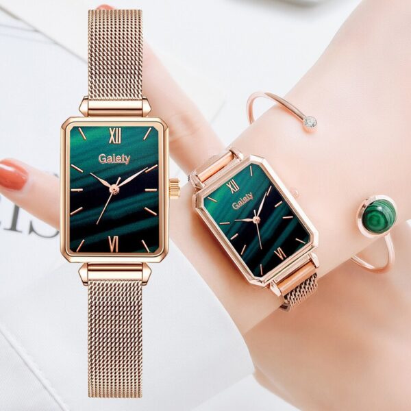Relógio Feminino no formato quadrado, acompanha pulseira de brinde. Perfeito para te acompanhar no dia a dia, com detalhes e números romanos.